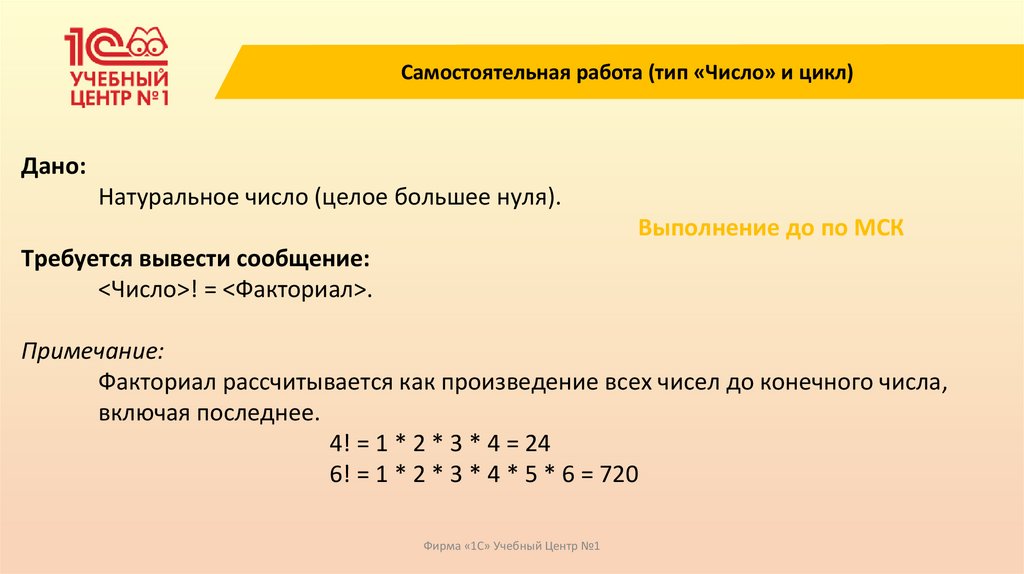 Факториал рассчитывается как произведение всех чисел до конечного числа,