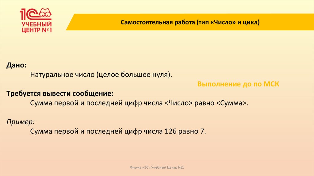 Сумма первой и последней цифр числа <Число> равно <Сумма>.