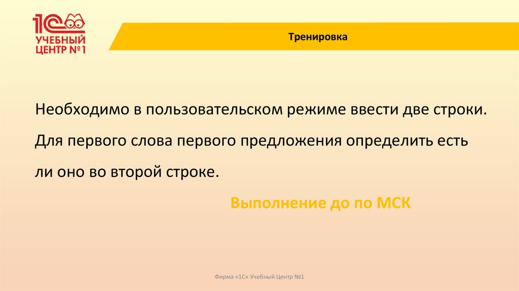 ТренировкаНеобходимо в пользовательском режиме ввести две строки.