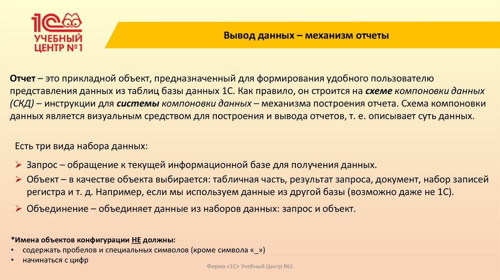 представления данных из таблиц базы данных 1С. Как правило, он строится на схеме компоновки данных
