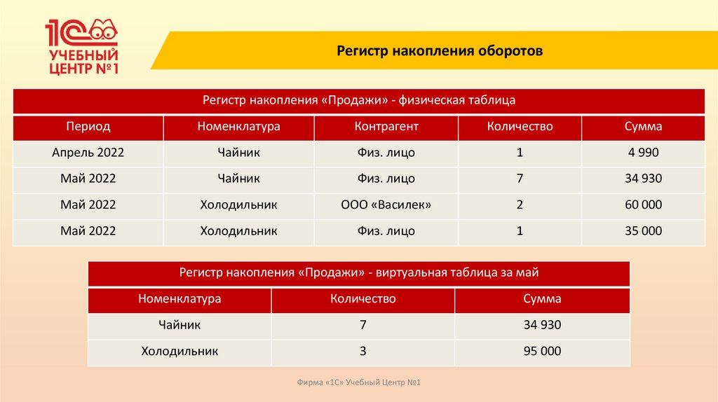 Регистр накопления оборотовРегистр накопления «Продажи» - физическая таблица