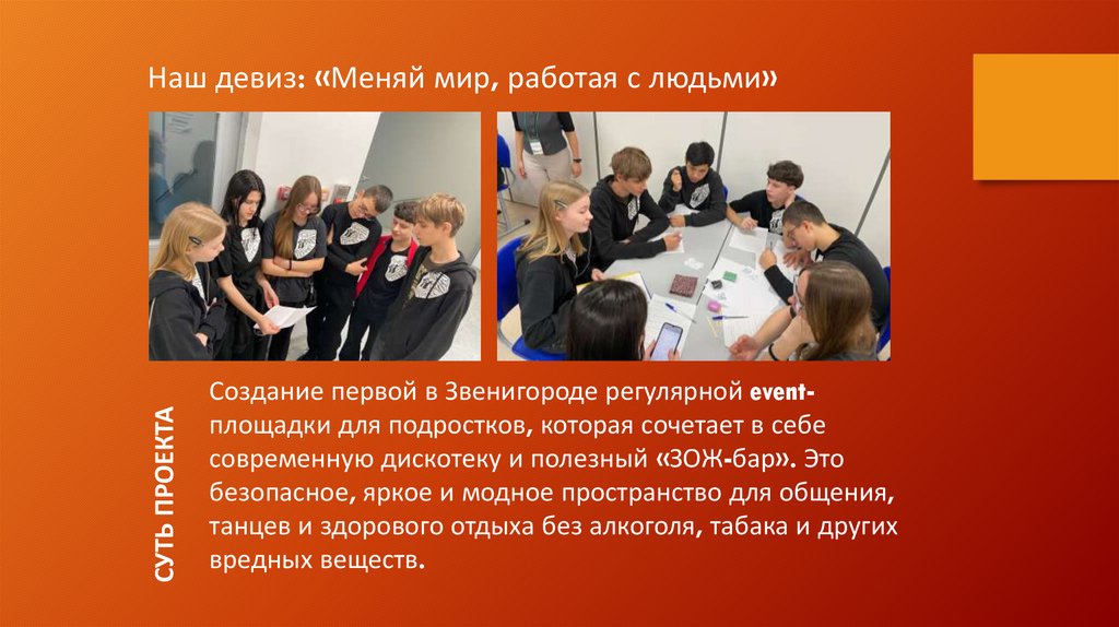 СУТЬ ПРОЕКТАНаш девиз: «Меняй мир, работая с людьми»