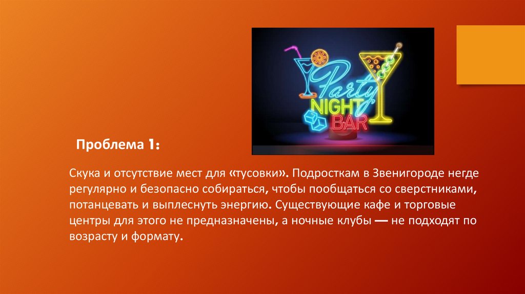 Проблема 1:Скука и отсутствие мест для «тусовки». Подросткам в Звенигороде негде