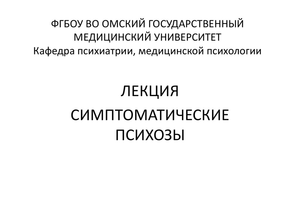 1. ФГБОУ ВО ОМСКИЙ ГОСУДАРСТВЕННЫЙ МЕДИЦИНСКИЙ УНИВЕРСИТЕТ Кафедра психиатрии, медицинской психологии