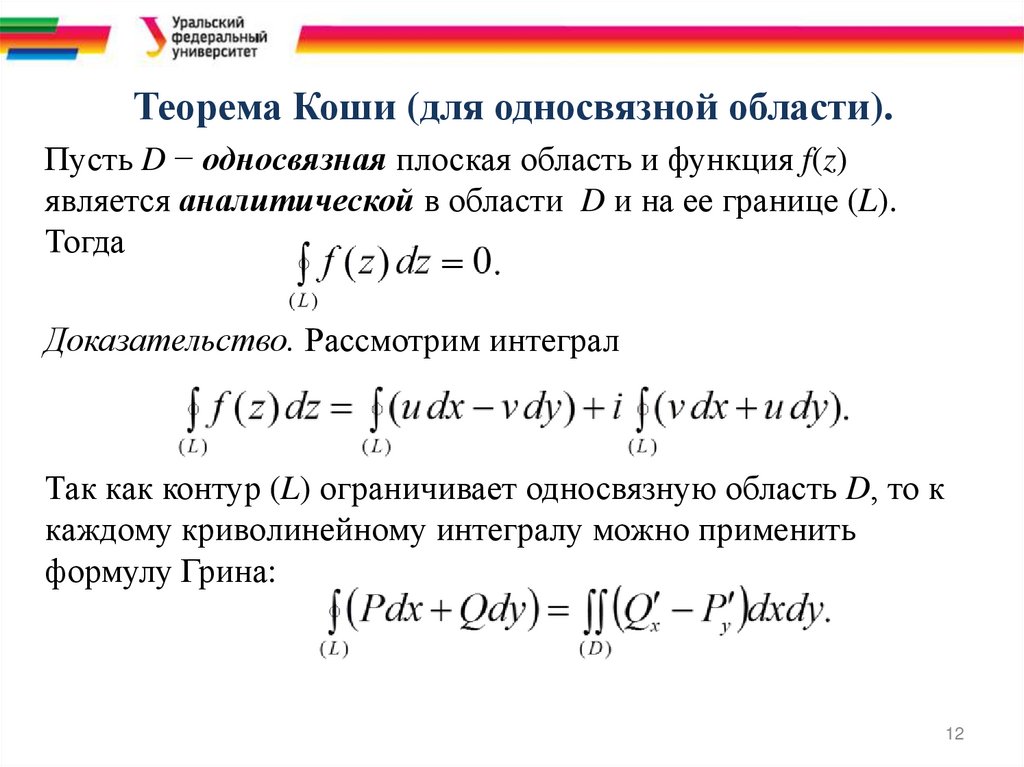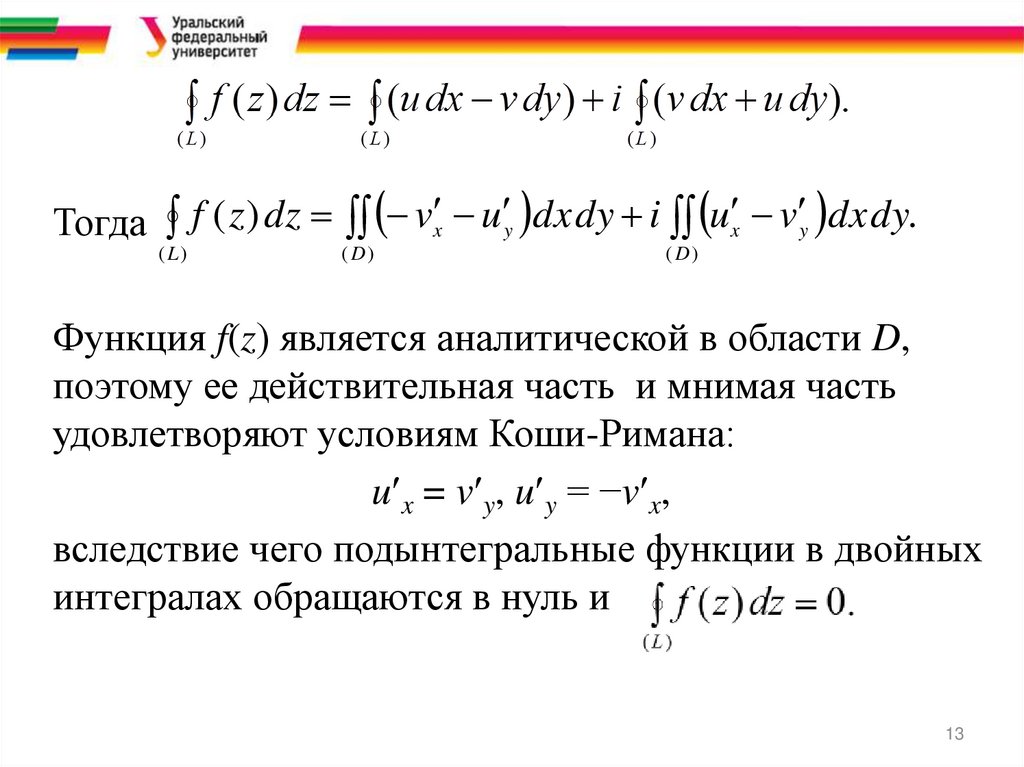 Тогда f ( z ) dz v x u y dx dy i u x v y dx dy.( L)