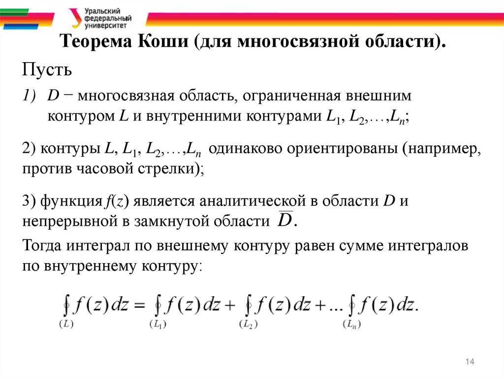 Тогда интеграл по внешнему контуру равен сумме интегралов