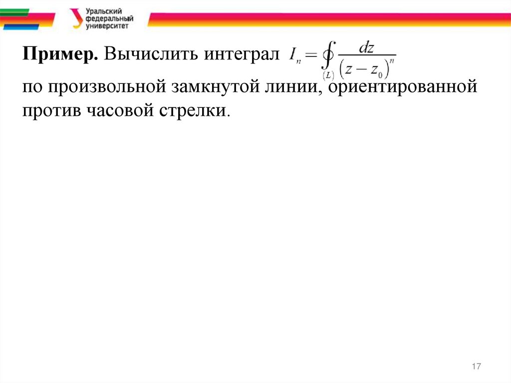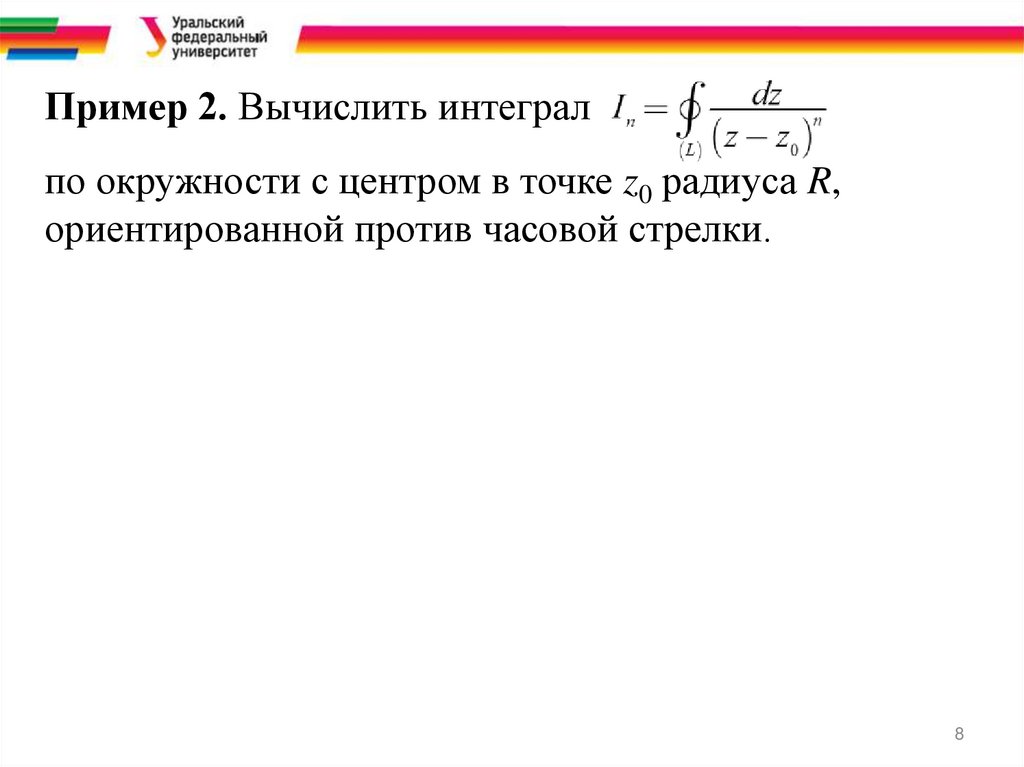 Пример 2. Вычислить интегралпо окружности с центром в точке z0 радиуса R,