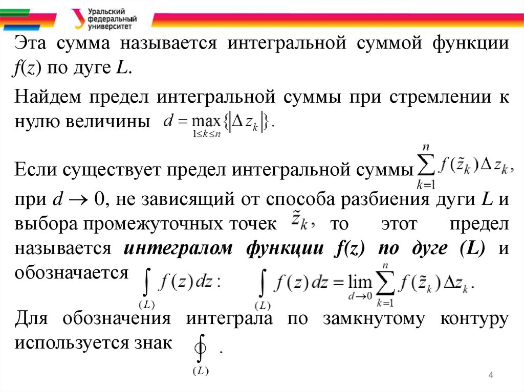 Эта сумма называется интегральной суммой функцииf(z) по дуге L.