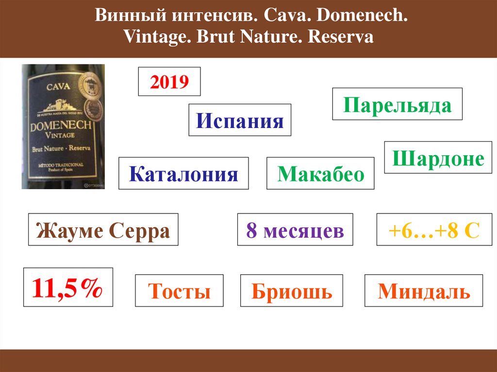 Винный интенсив. Cava. Domenech.Vintage. Brut Nature. Reserva