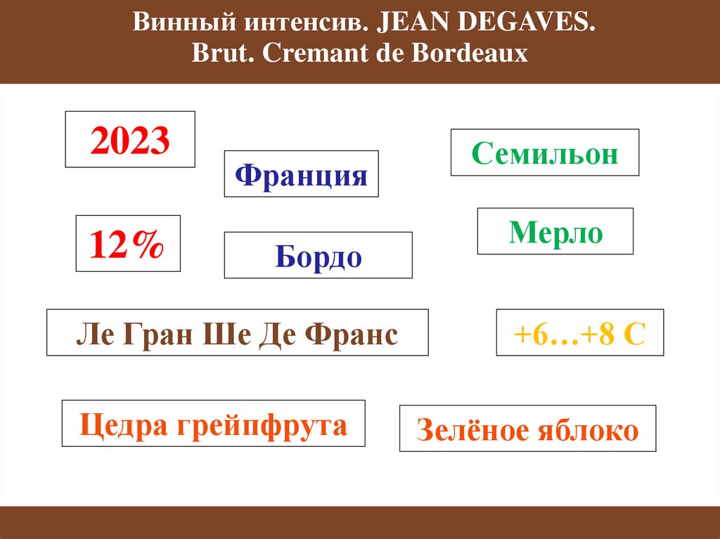 Винный интенсив. JEAN DEGAVES.Brut. Cremant de Bordeaux