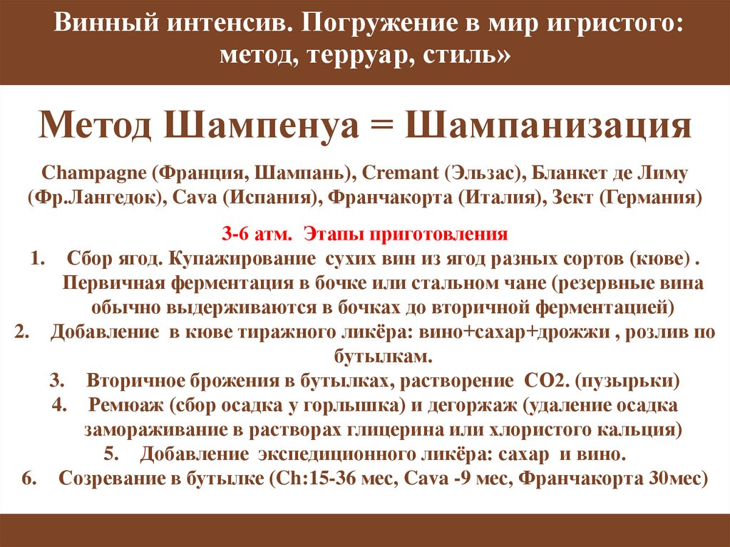 Метод Шампенуа = Шампанизация