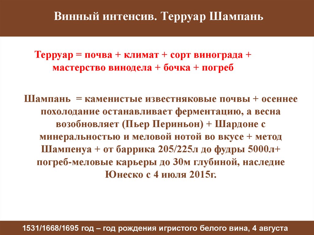 Винный интенсив. Терруар ШампаньТерруар = почва + климат + сорт винограда +