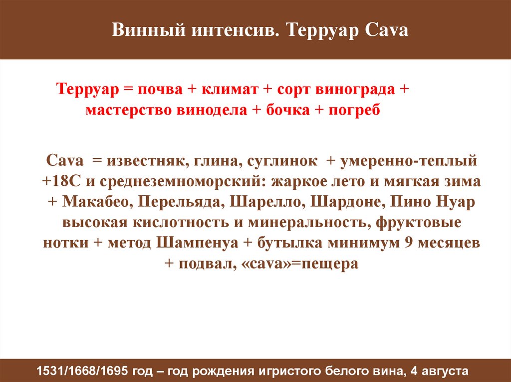 Винный интенсив. Терруар CavaТерруар = почва + климат + сорт винограда +