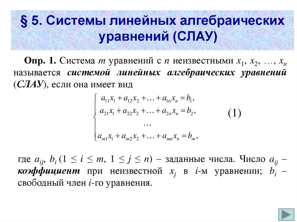§ 5. Системы линейных алгебраическихуравнений (СЛАУ)