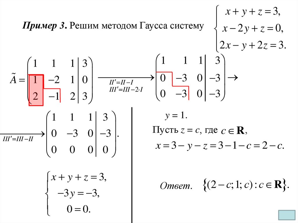 x y z 3,Пример 3. Решим методом Гаусса систему x 2 y z 0,