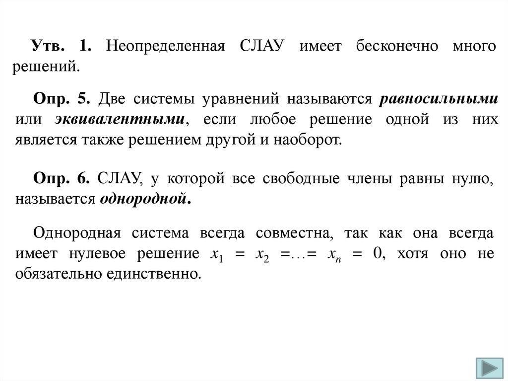 Утв. 1. Неопределенная СЛАУ имеет бесконечно многорешений.