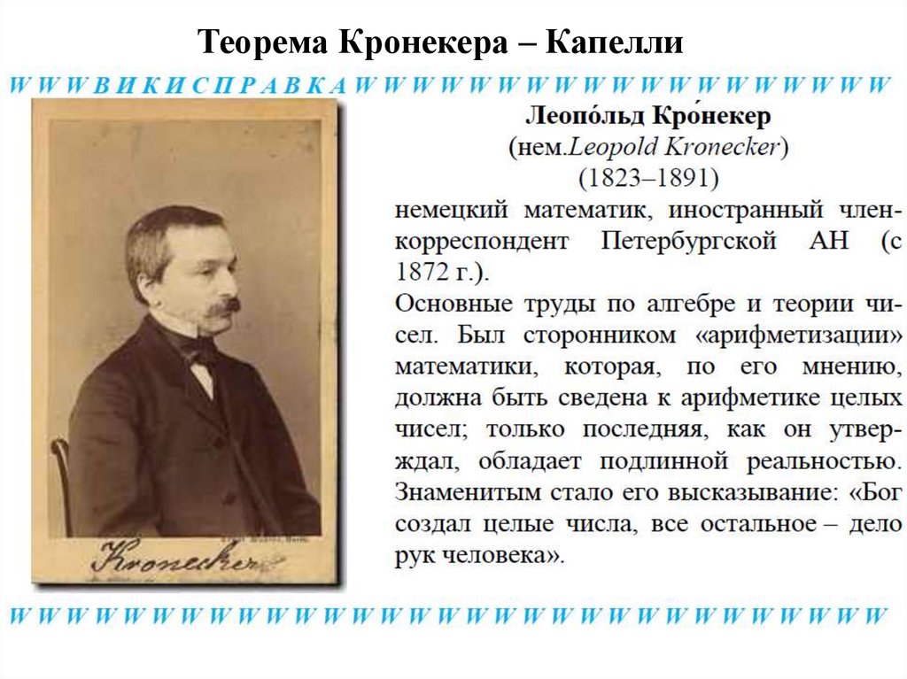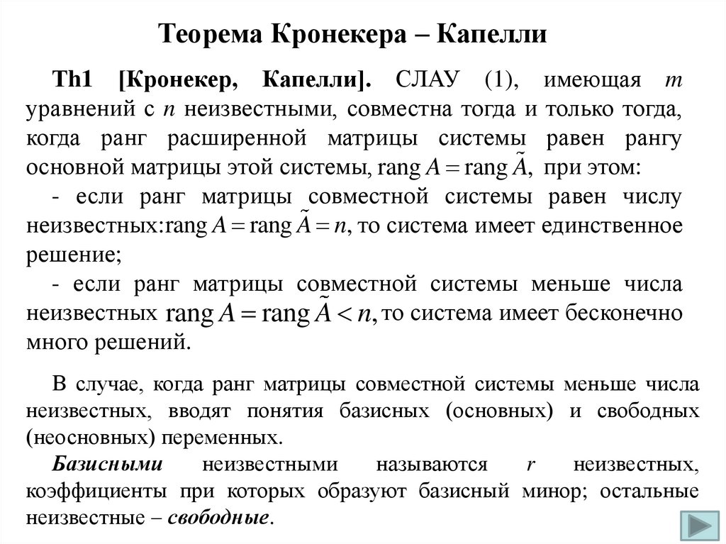 Теорема Кронекера – КапеллиТh1 [Кронекер, Капелли]. СЛАУ (1), имеющая m
