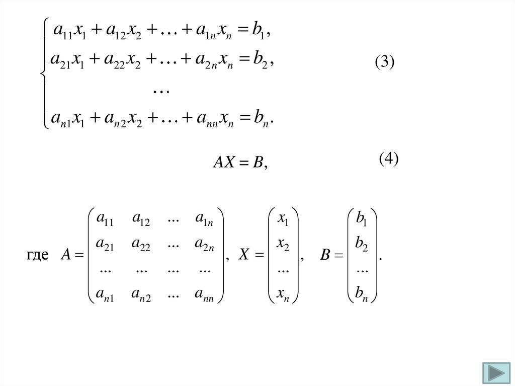 Опр. 7. СЛАУ, содержащая n уравнений с n неизвестными,