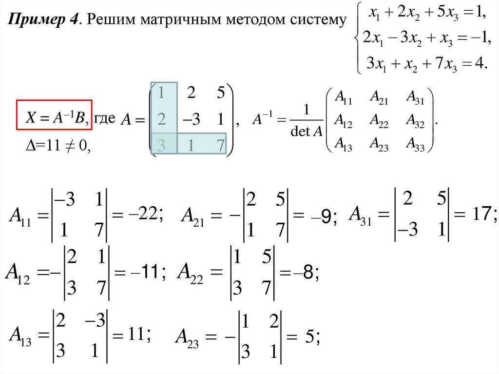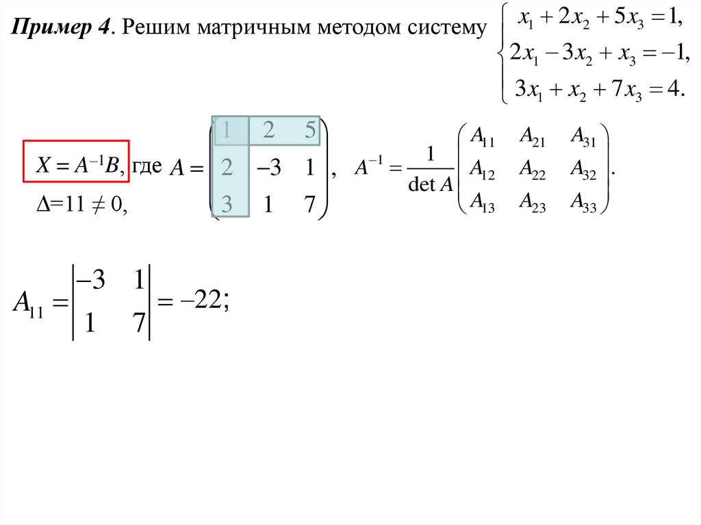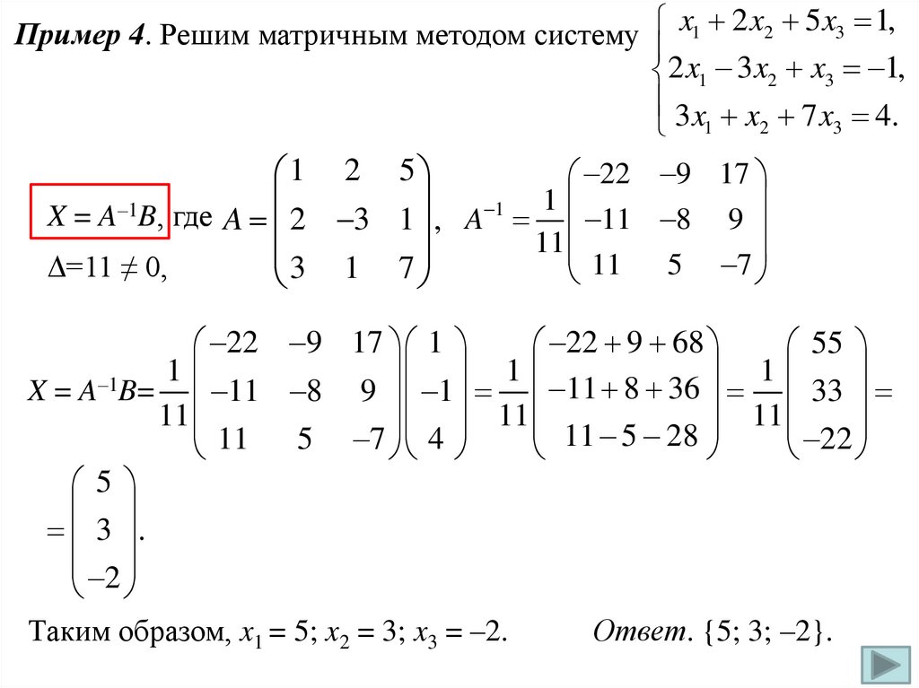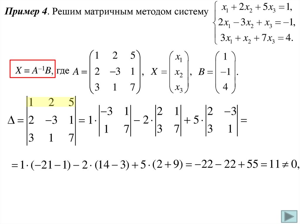 x1 2 x2 5 x3 1,Пример 4. Решим матричным методом систему