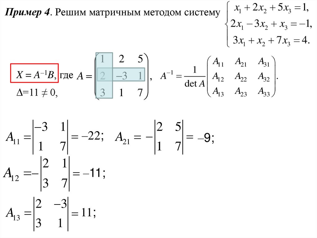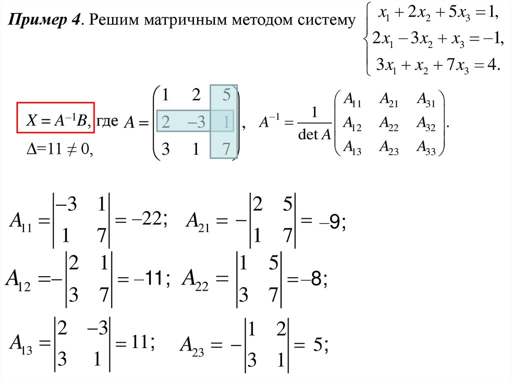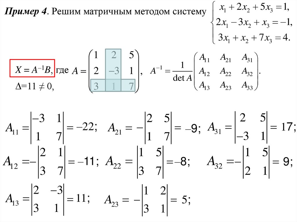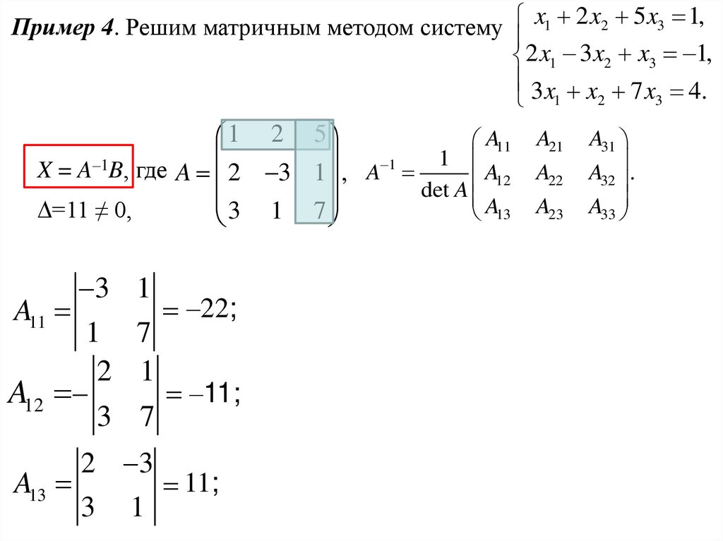x1 2 x2 5 x3 1,Пример 4. Решим матричным методом систему