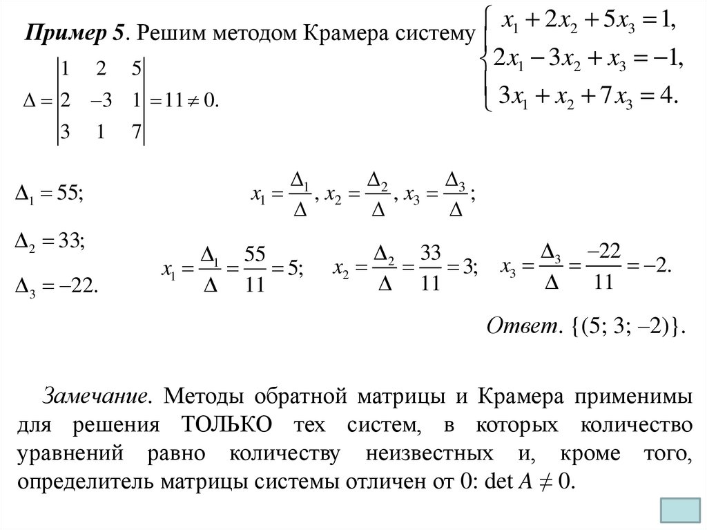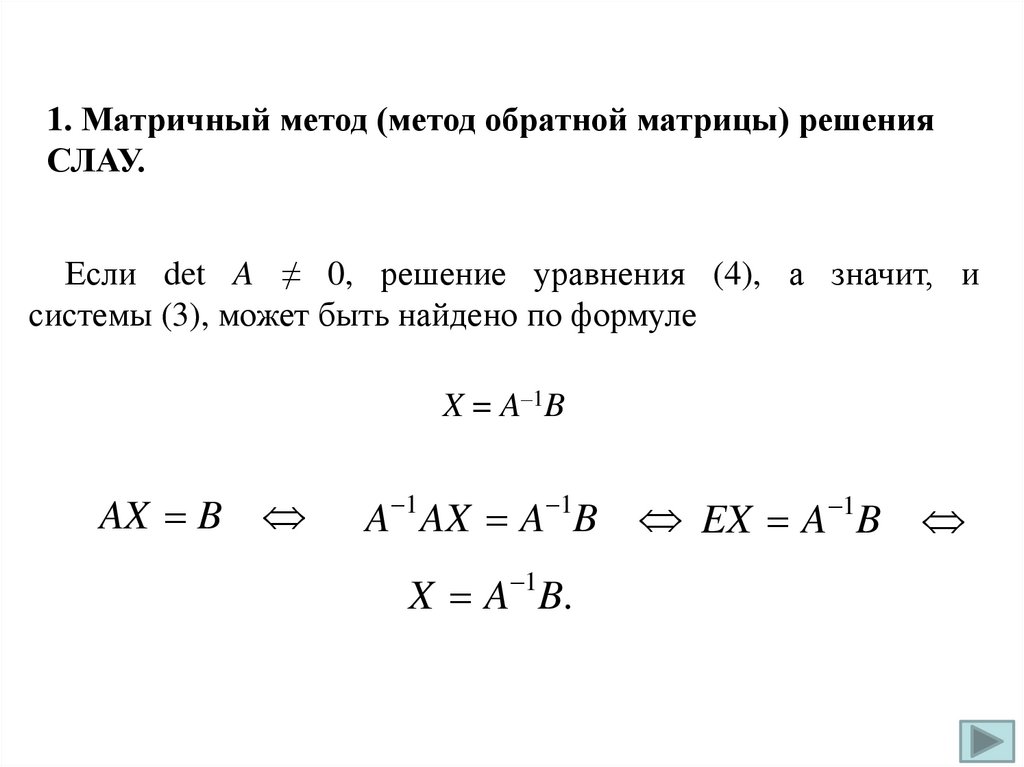 Методы решения невырожденных СЛАУЕсли det A ≠ 0, СЛАУ может быть решена как матричное