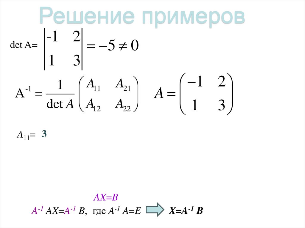 X = A–1B, где A 2 3 1 , X x2 , B 1 .