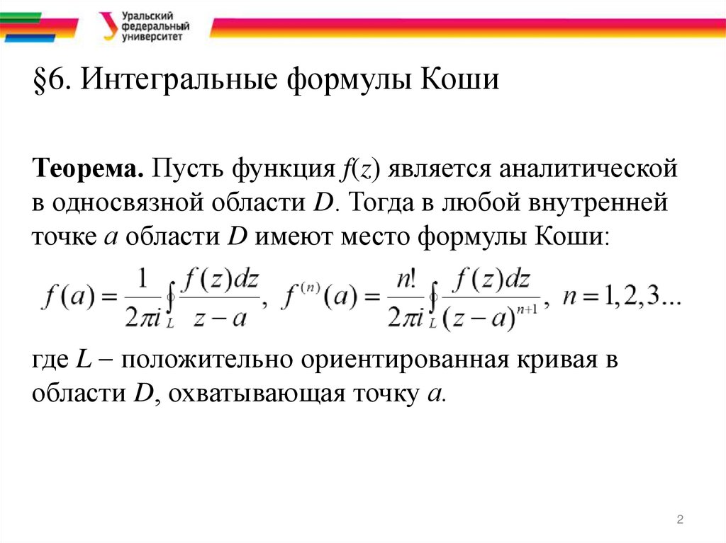 2. Интегральные формулы Коши можно записать в виде