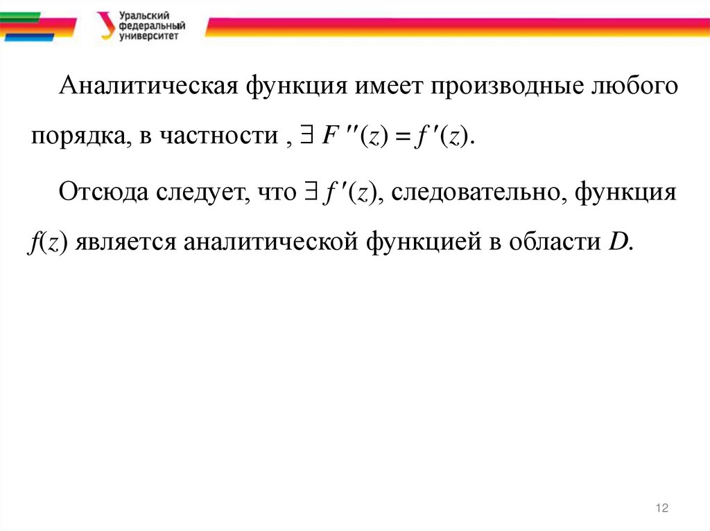 Аналитическая функция имеет производные любогопорядка, в частности , F (z) = f (z).