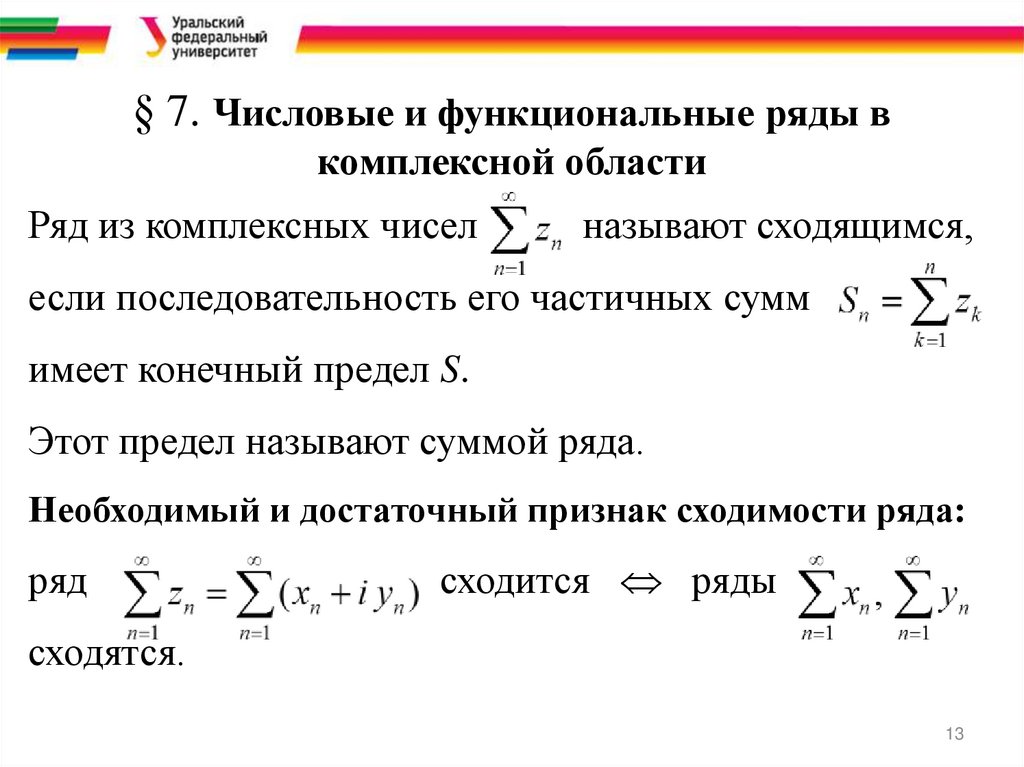 § 7. Числовые и функциональные ряды вкомплексной области
