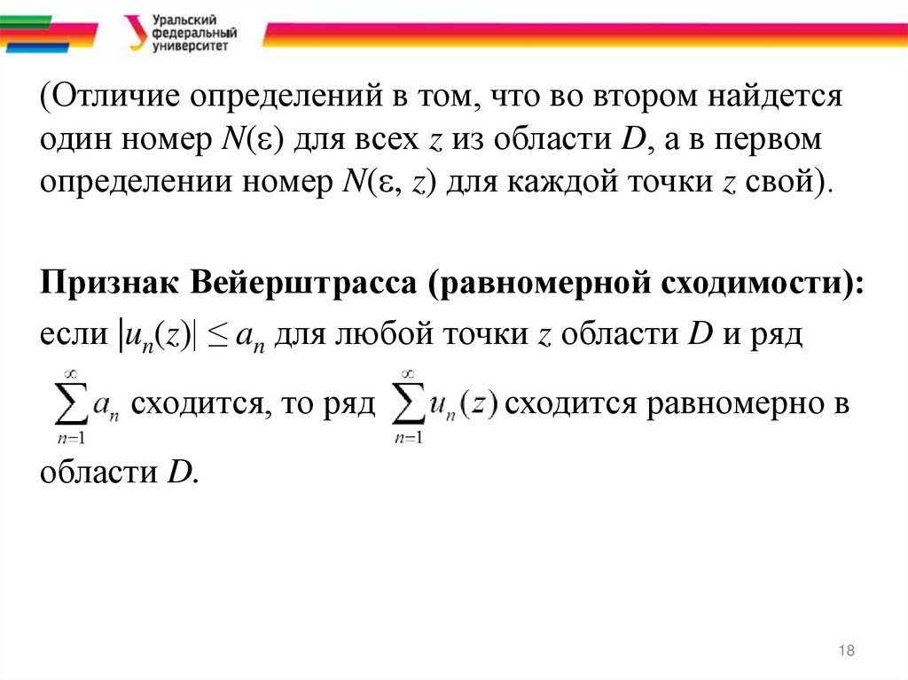 (Отличие определений в том, что во втором найдетсяодин номер N( ) для всех z из области D, а в первом