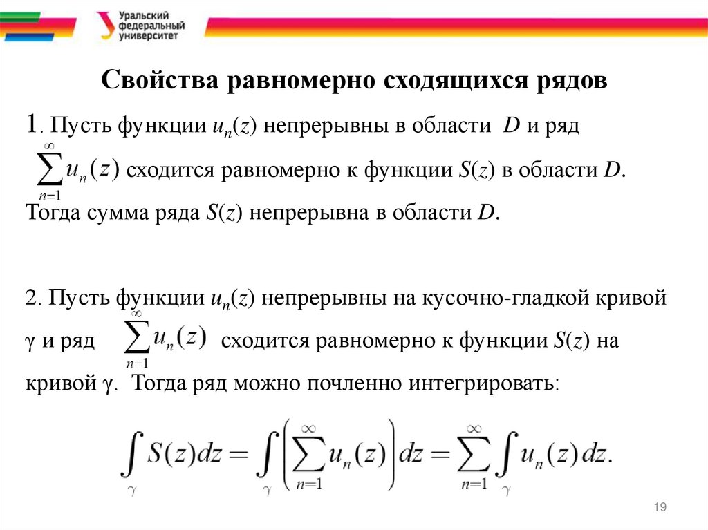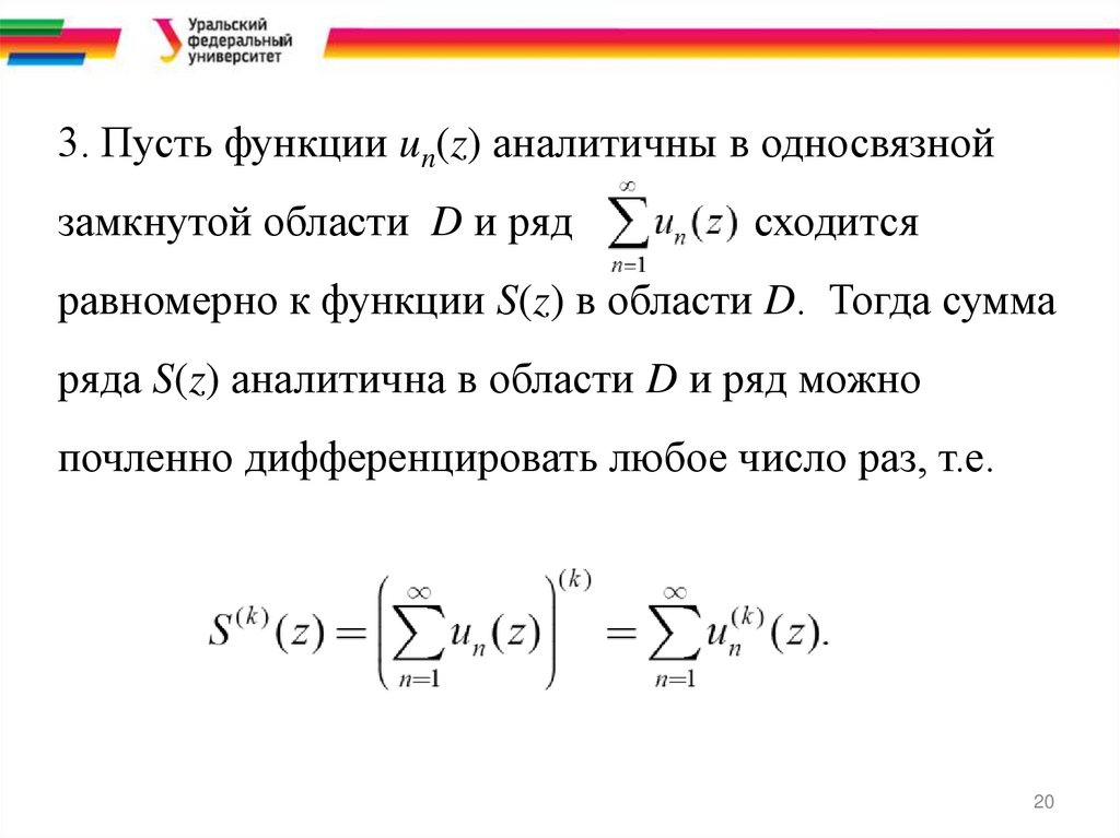3. Пусть функции un(z) аналитичны в односвязнойзамкнутой области D и ряд