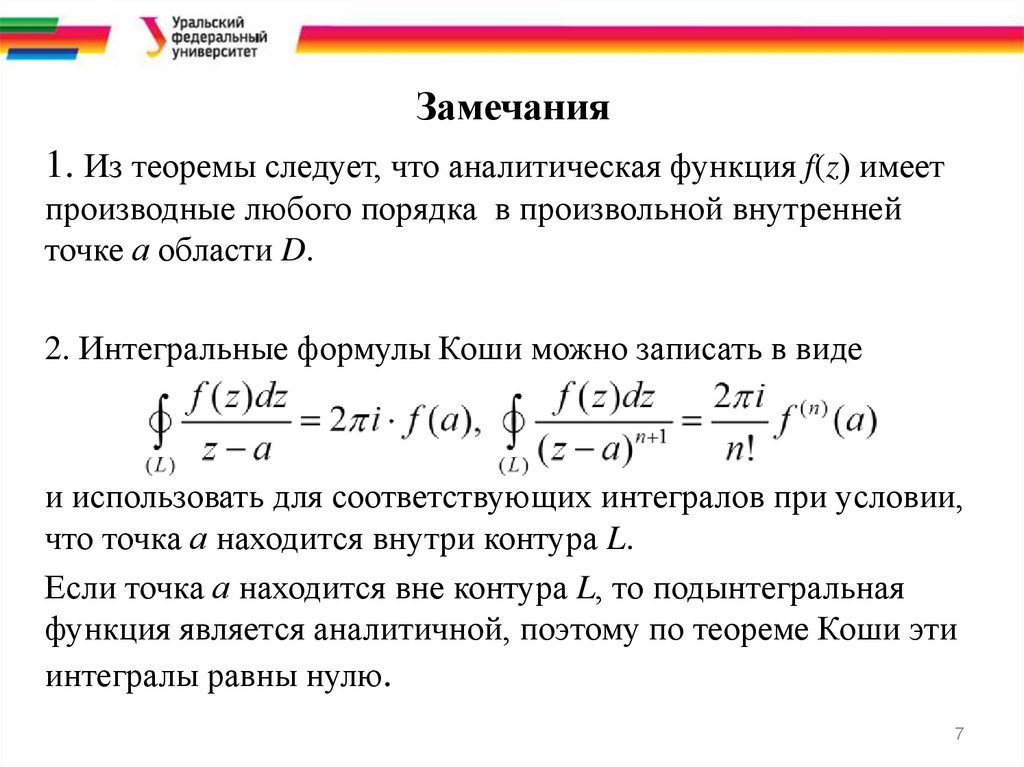 Замечания1. Из теоремы следует, что аналитическая функция f(z) имеет