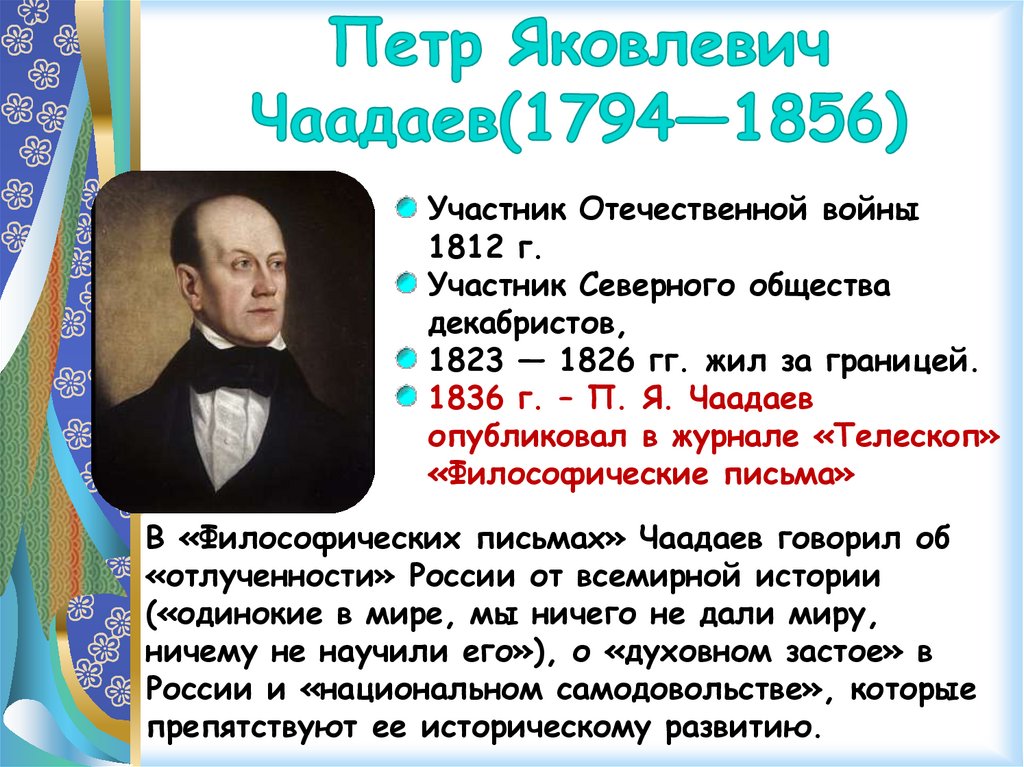 За публикацию своих«Философических писем»
