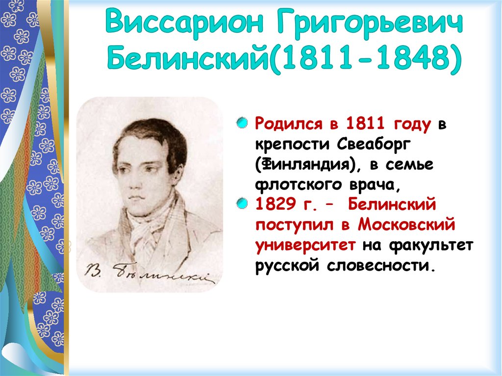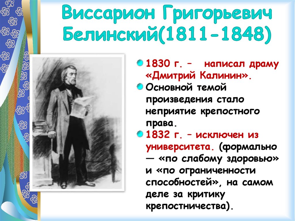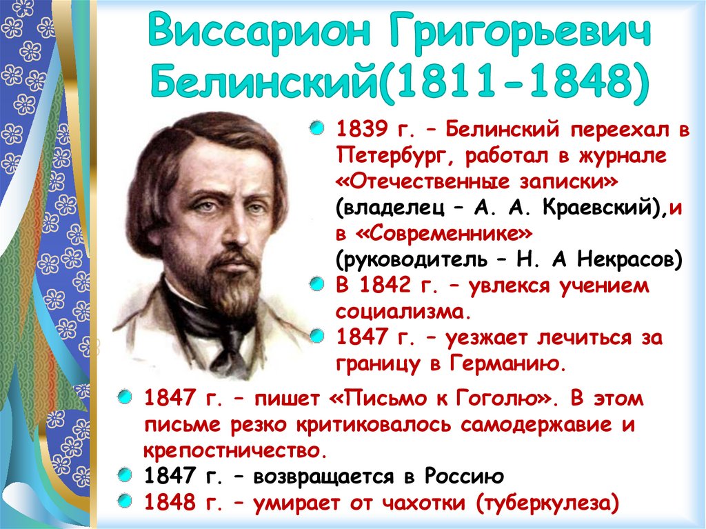 1839 г. – Белинский переехал вПетербург, работал в журнале