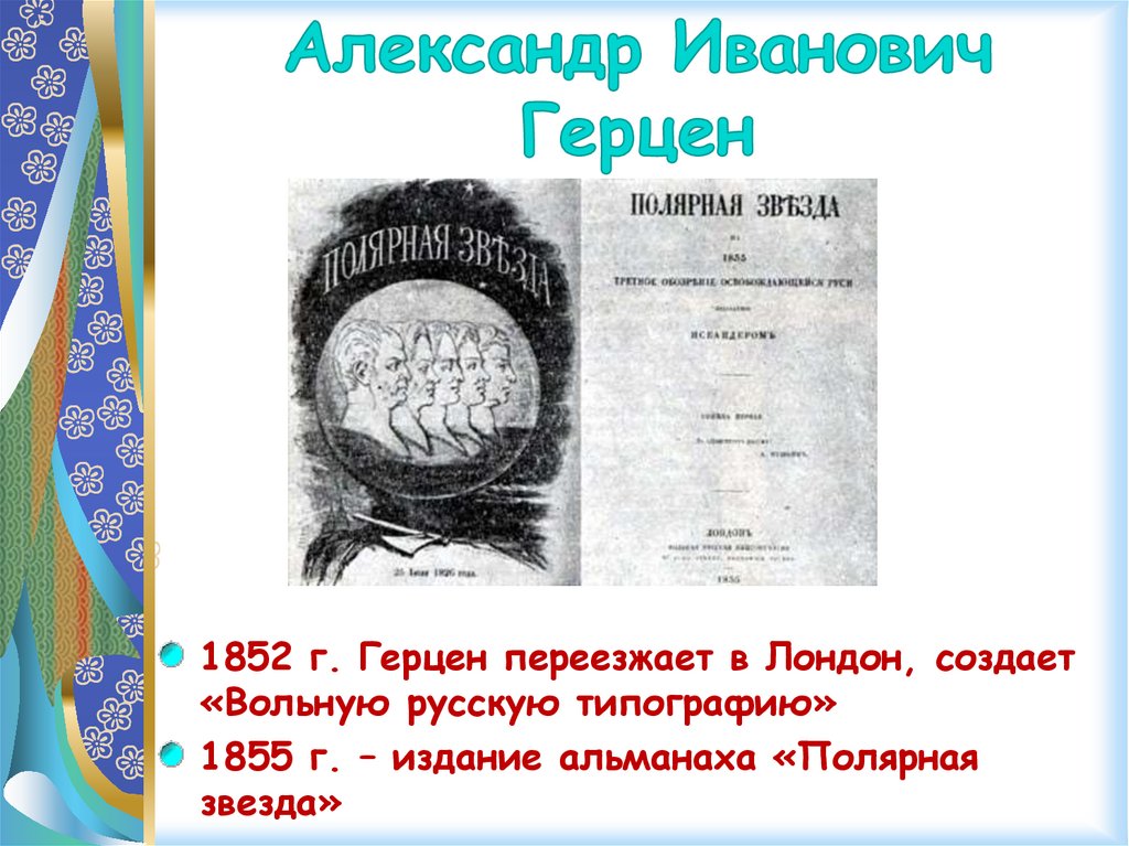 1852 г. Герцен переезжает в Лондон, создает«Вольную русскую типографию»