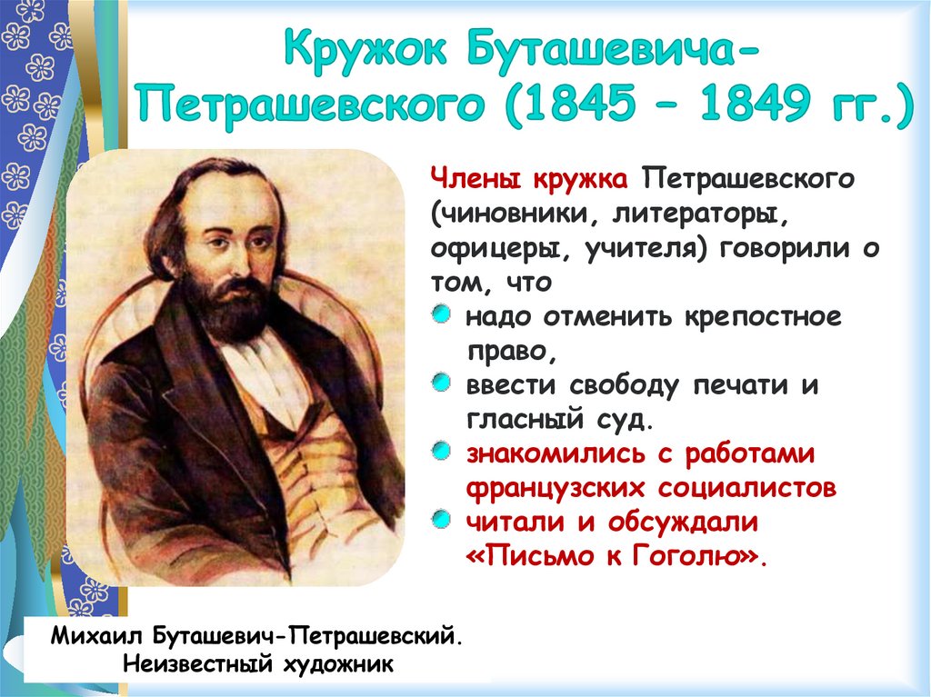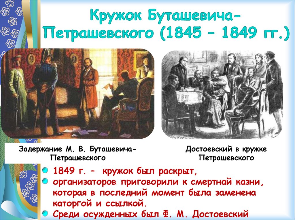 1845 – 1849 гг. – кружок БуташевичаПетрашевского (участник кружка – Ф. М.