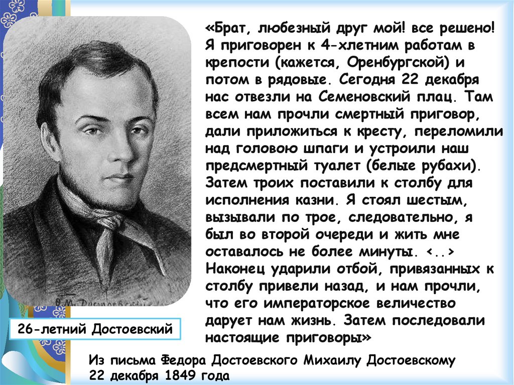 26-летний Достоевский«Брат, любезный друг мой! все решено!