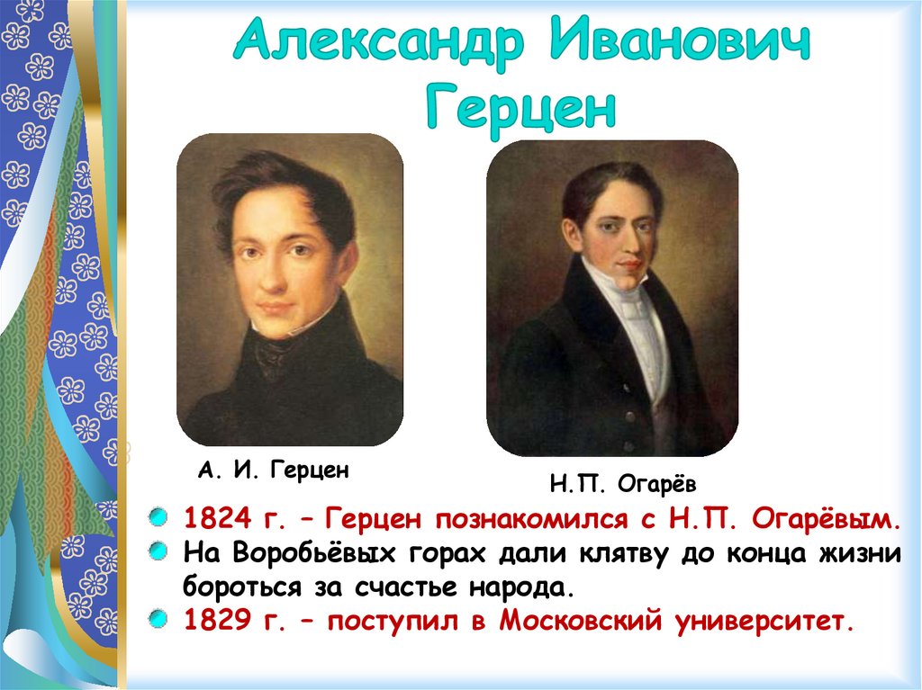 1824 г. – Герцен познакомился с Н.П. Огарёвым.