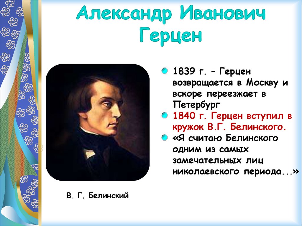 1840 г. Герцен вступил в
