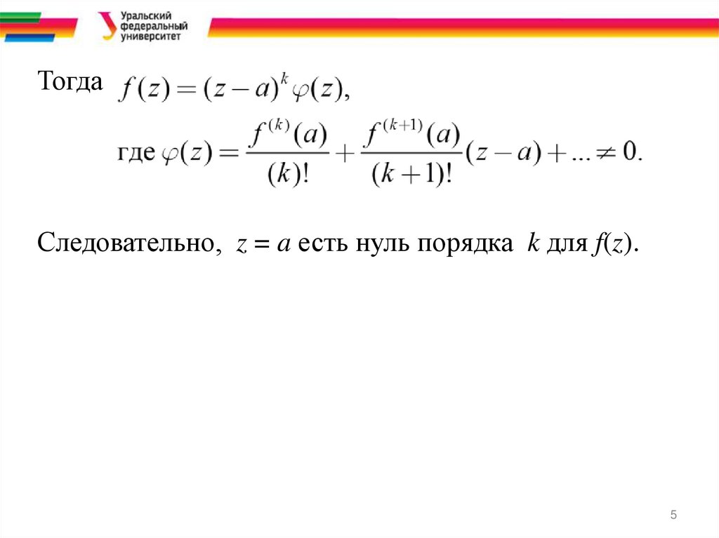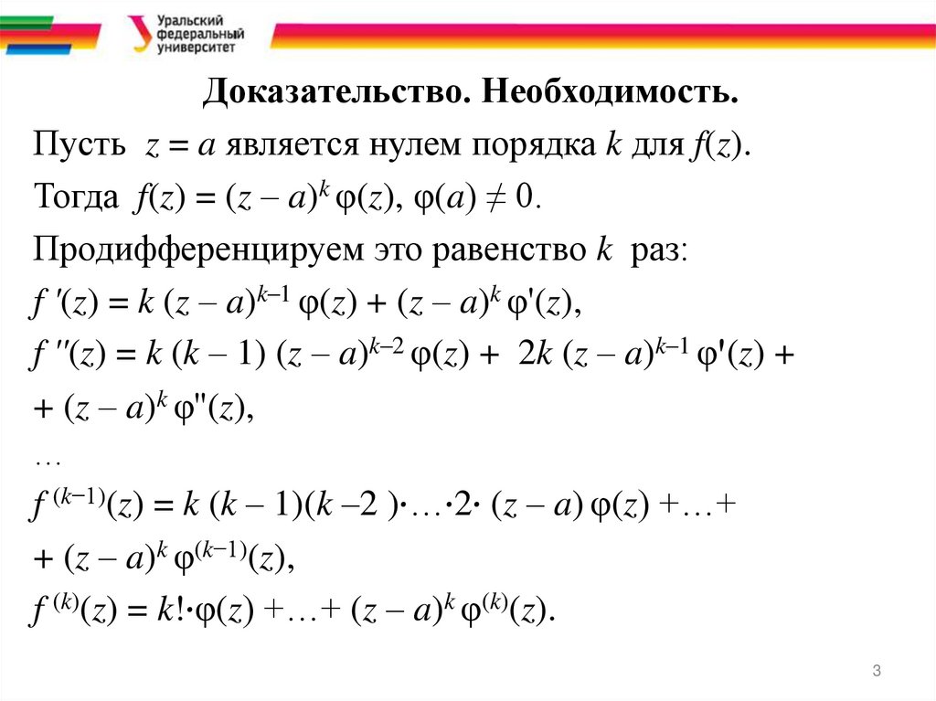 Тогда f(z) = (z – a)k φ(z), φ(a) ≠ 0.