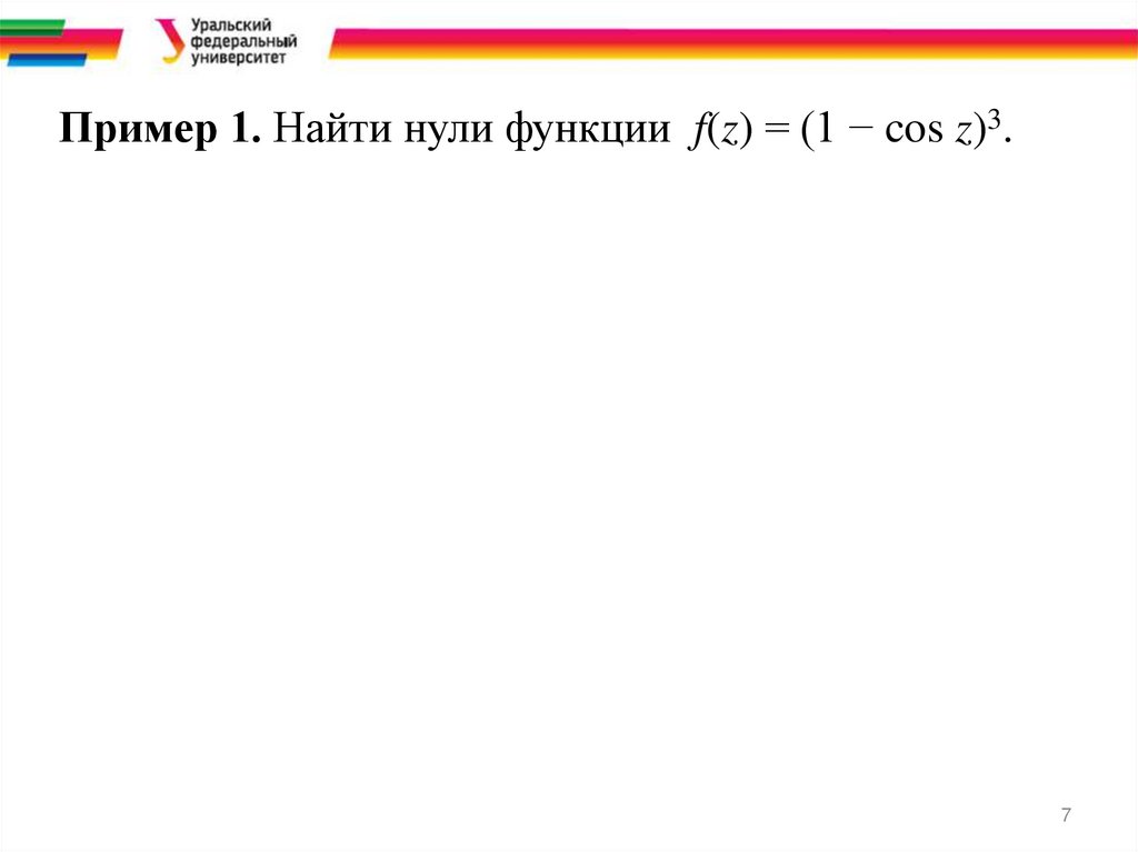 Пример 1. Найти нули функции f(z) = (1 − cos z)3.7