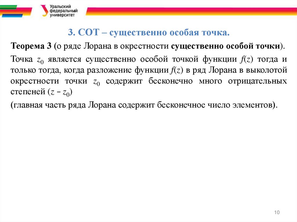 3. СОТ – существенно особая точка.Теорема 3 (о ряде Лорана в окрестности существенно особой точки).