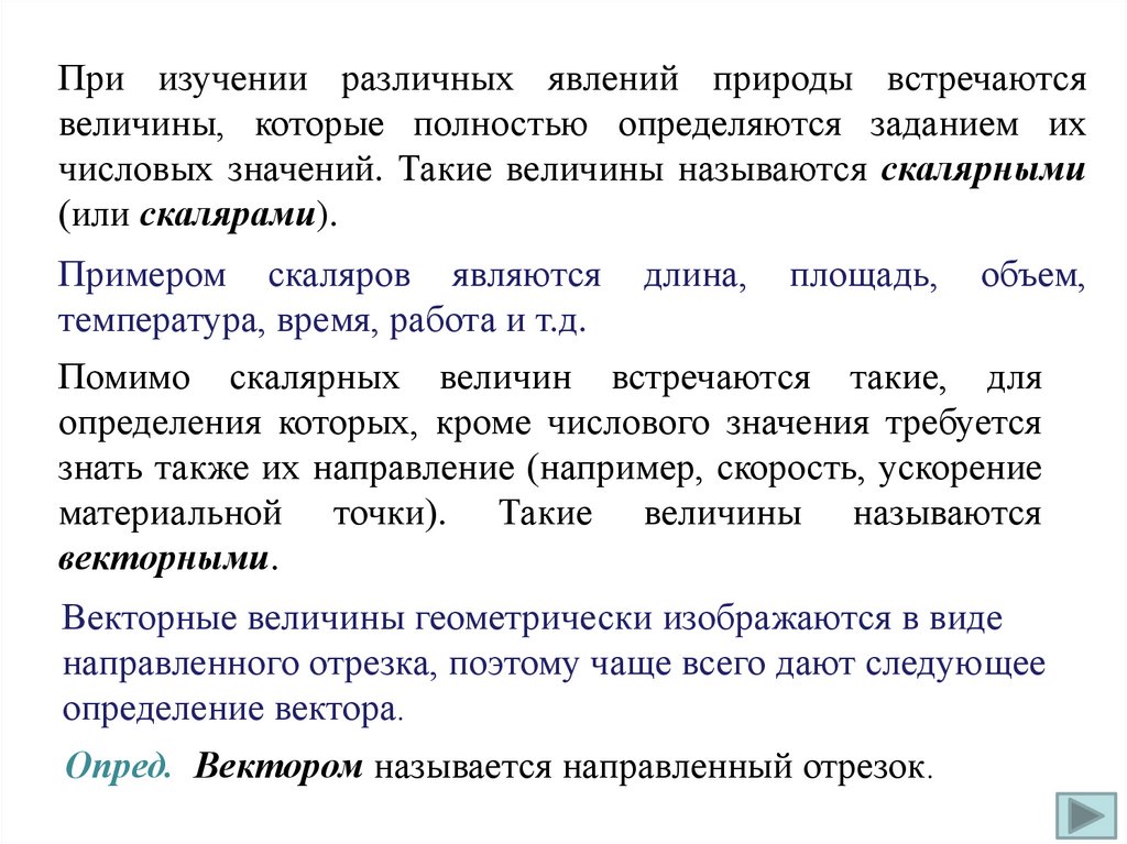 Помимо скалярных величин встречаются такие, для