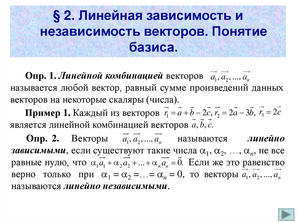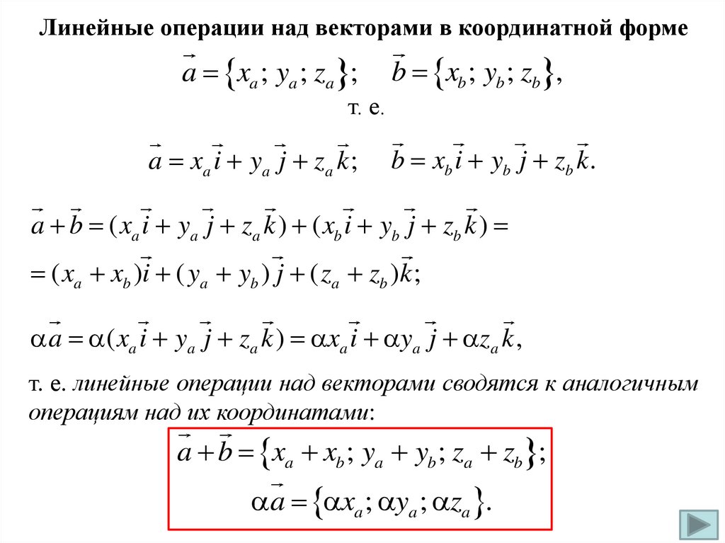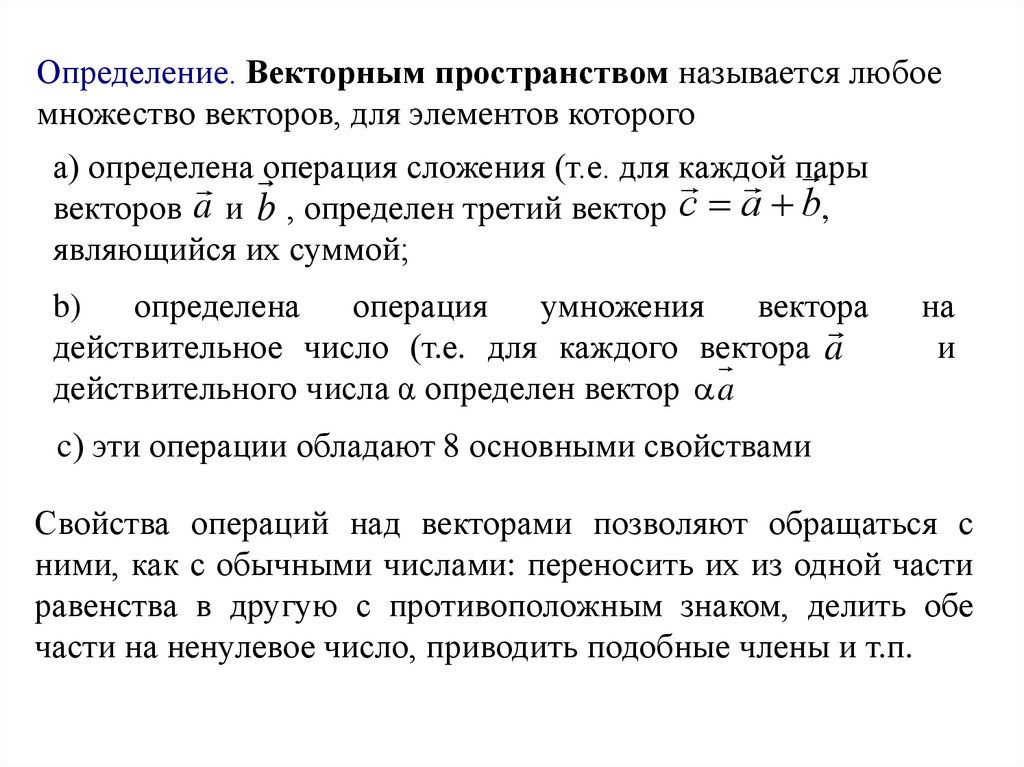 пространстве. Линейные операции
