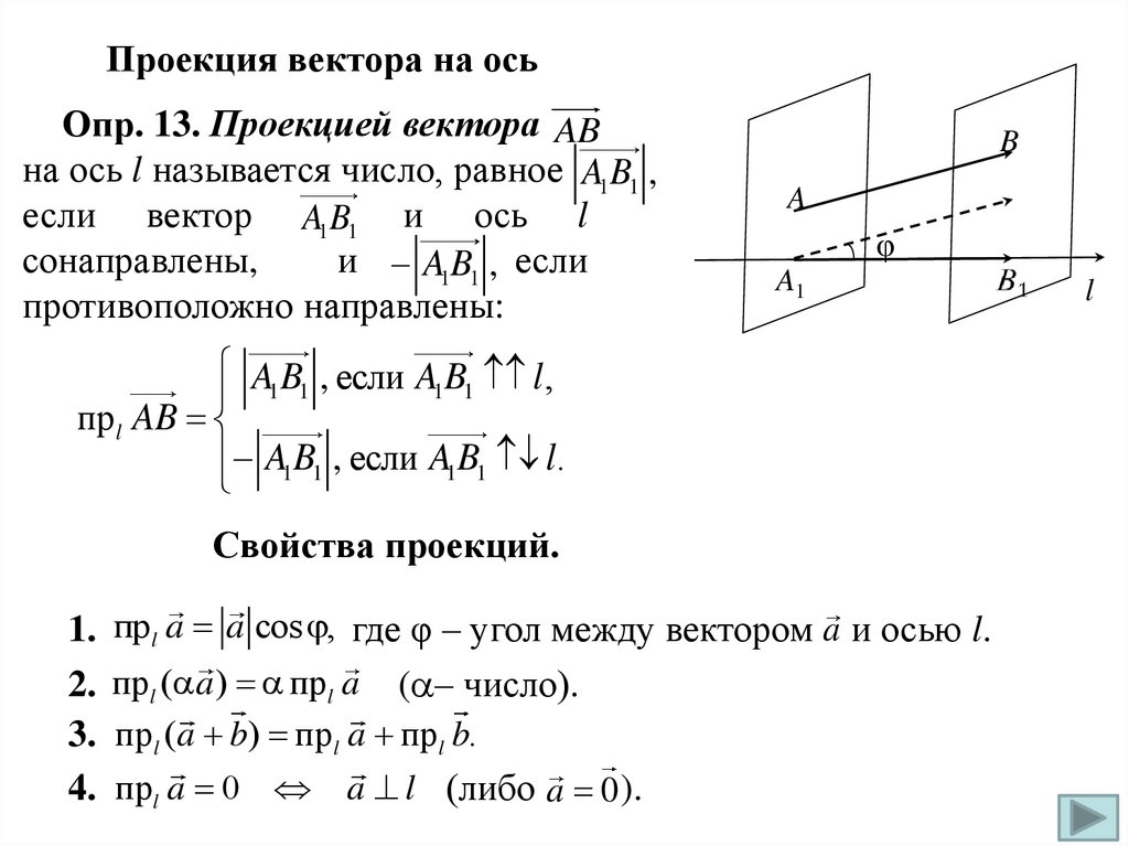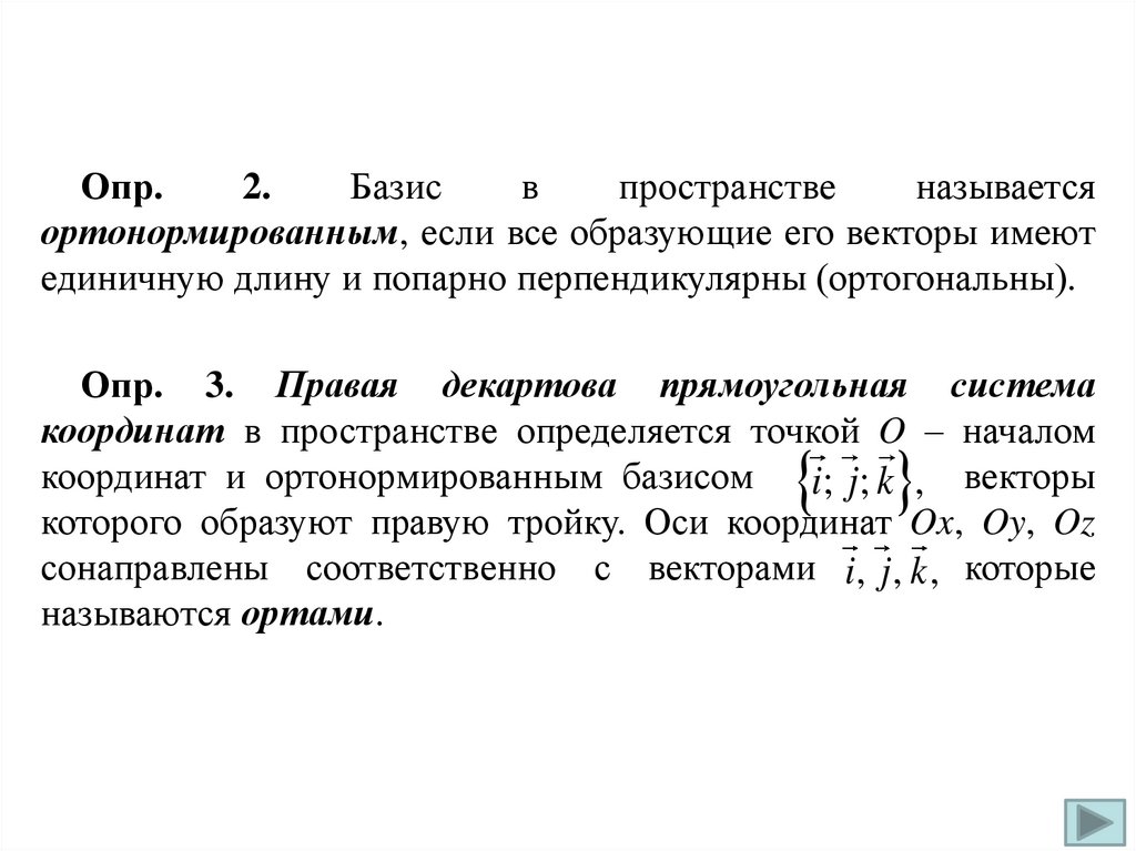 Опр. 8. Векторы a и b, лежащие на перпендикулярных
