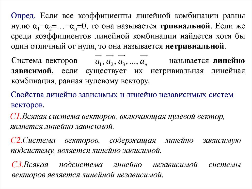 Все основные понятия векторной алгебры определяются длясвободных векторов.