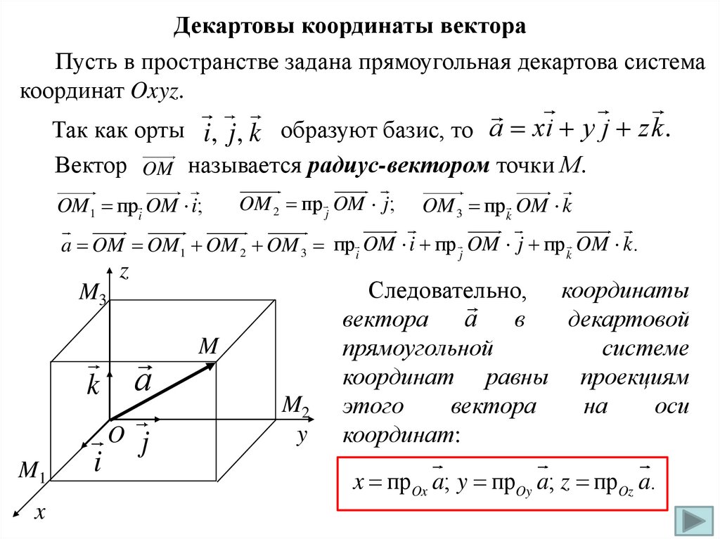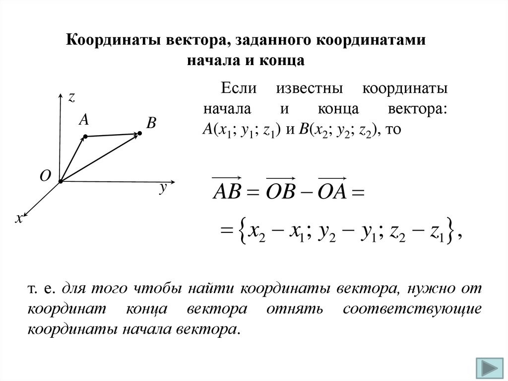 Координаты вектора, заданного координатаминачала и конца