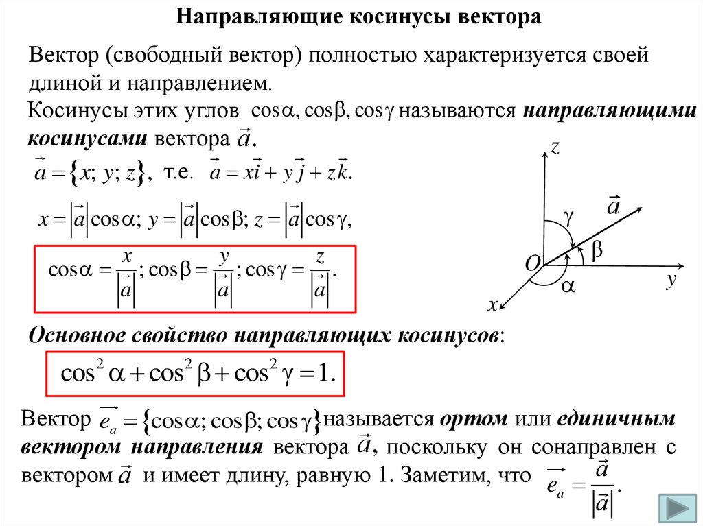Опр. 3. Единичным называется вектор, длина которого равна