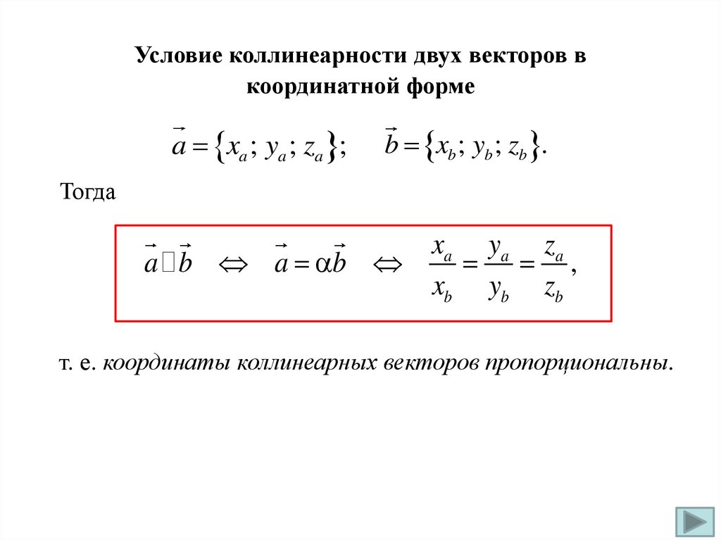 т. е. координаты коллинеарных векторов пропорциональны.