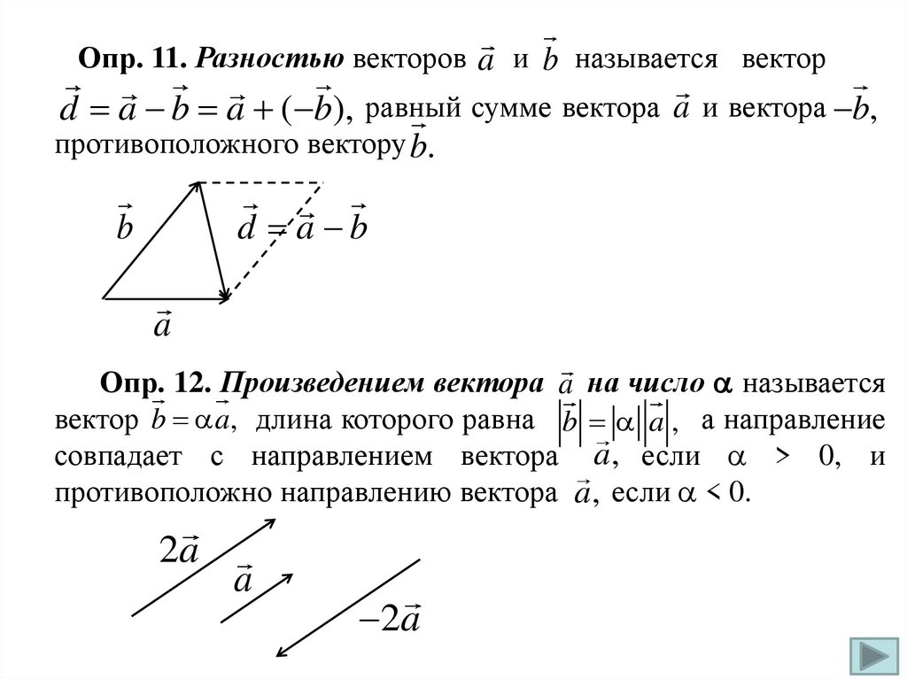 Опред. Вектором называется направленный отрезок.